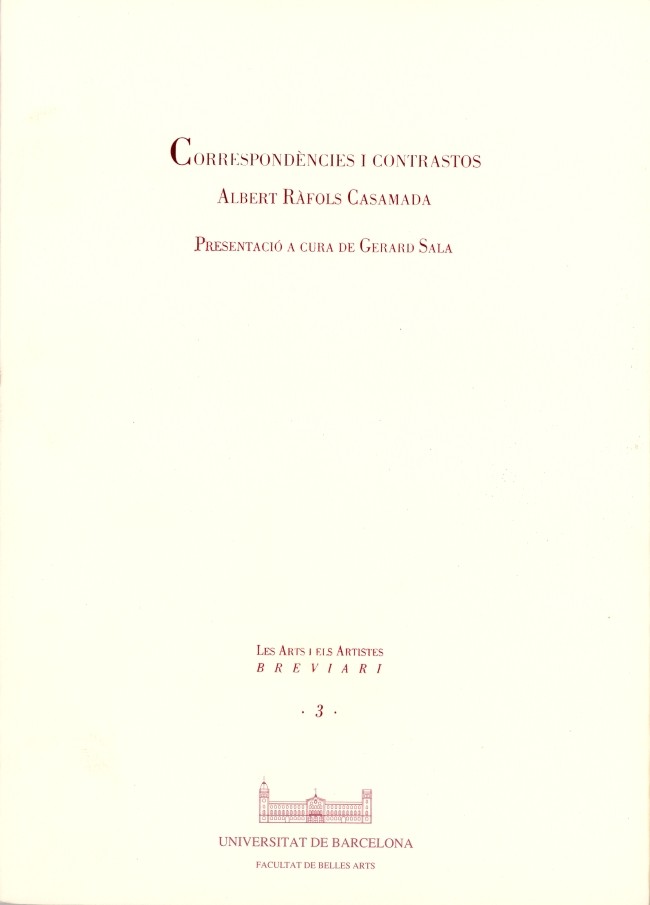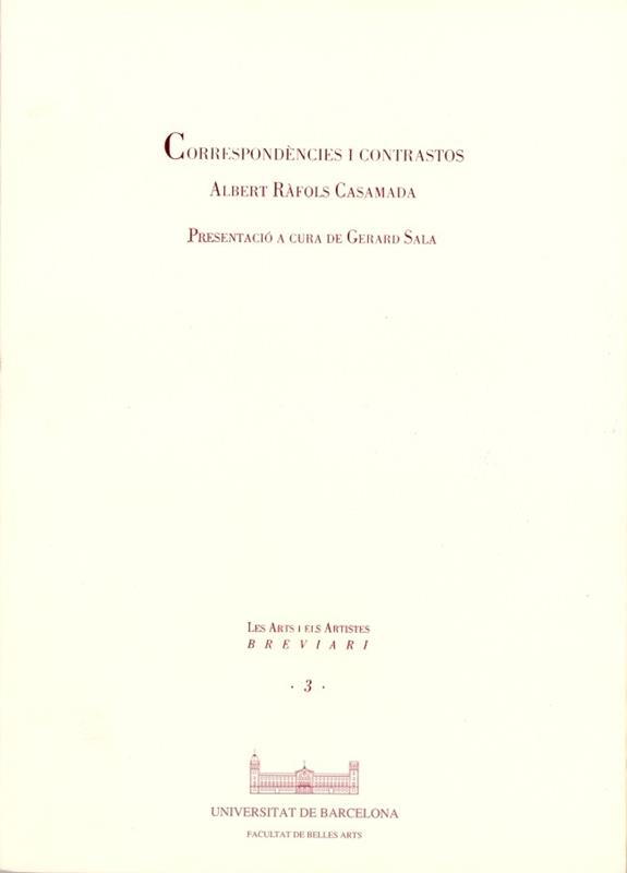 Albert Ràfols Casamada, pintor i poeta, parla en aquest breviari del concepte del buit, de l'equivalència entre pintura i poesia, i del sentit i l'esperit de l'art.."Correspondències i contrastos" reprodueix el text llegit per Ràfols Casamada amb motiu de la inauguració de la nova sala de la Faculta...