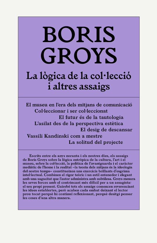 Escrits entre els anys noranta i els nostres dies, els assaigs de Boris Groys sobre la lògica entròpica de la cultura, l'art i el museu, sobre la col·lecció, la política de l'avantguarda i el caràcter mediàtic de l'home i la realitat ?la teoria dels mitjans és la ideologia del nostre temps? constitueixen uns exercicis brillants d'esgrima intel·lectual. Combinen el rigor teòric i un estil entenedor i elegant amb una sagacitat que l’autor administra amb subtilesa. Groys mesura les seves forces amb el contrincant més difícil per a un assagista: el seu propi present. Gairebé tots els assaigs comencen reverenciant les idees establertes, però acaben cada embat deixant el lector prou tocat perquè hi continuï reflexionant, perquè desitgi pensar les coses d'una altra manera.