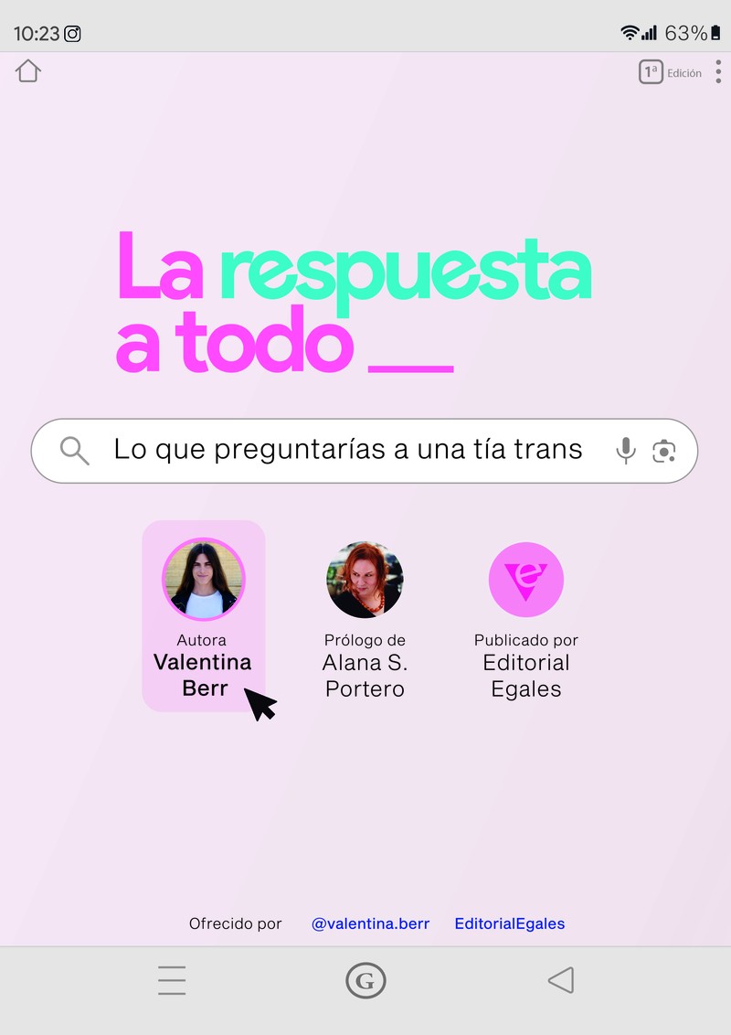 Imagina que estás en un cumpleaños. Hay gente que no conoces y te toca sentarte al lado de una chica. Y que esa chica es trans. Este libro responde todas tus preguntas.«¿Cuándo te diste cuenta de que eres trans? ¿Cómo se lo tomaron tus padres? ¿Cuál era tu nombre de tío? ¿Te has operado ya? ¿Cómo follas? ¿Por qué hay feministas en contra de las mujeres trans? ¿Pero no tenéis ventaja en deportes femeninos?». Si las teorías sobre género te dan un poco de pereza, lo que te cuento en este libro puede gustarte. Imagina que estás en un cumpleaños. Hay gente que no conoces y te toca sentarte al lado de una chica desconocida. Y esa chica es trans. Ese tipo de situaciones son el momento favorito de mucha gente para avasallarnos a preguntas como las del inicio. Preguntas que igual no queremos contestar, ya sea porque hoy no nos apetece hacer pedagogía, porque estamos hartas de responder siempre a lo mismo, o porque igual no tenemos ganas de hablar de nuestro pasado o de nuestros genitales con alguien que apenas conocemos. Bien, pues hoy esa chica soy yo, y este libro será esa conversación. Aquí encontrarás respuesta a todos los «¿te puedo hacer una pregunta?» que se te puedan ocurrir acerca de ser trans.En estas páginas leerás textos entretenidos, divertidos y pedagógicos cuyo objetivo es resolver, de una vez por todas, esas inquietudes más habituales sobre las mujeres trans y, así, poder empezar a tener conversaciones más? interesantes. Tú ya has hecho todas las preguntas.Ahora es hora de responderlas. «En tiempos de imposición de silencios y repetición de eslóganes, Valentina recupera con humor, cercanía y la más subversiva de las astucias la radicalidad del verbo preguntar. Te hará creer que responde a tus preguntas cuando, realmente, llena de interrogantes tu cotidianidad. Sin duda saciarás tu curiosidad, mas no podrás abandonar esta conversación sin sufrir tu propia trans/formación».IRA HYBRIS, autora de Mutantes y divinas