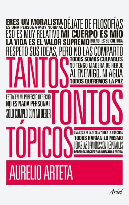 La filosofía práctica no está hecha para predicar en el vacío, sino para guiar nuestra conducta privada y pública. Como una vía de acercar esa reflexión a la gente, Aurelio Arteta nos propone reunir estos tópicos tan familiares a fin de escudriñar sus flacos fundamentos y efectos perversos. Ellos delatan las creencias dominantes, los grandes prejuicios colectivos. Tantos tontos tópicos recoge desde las excusas más socorridas de la irresponsabilidad y la pereza hasta la retórica ordinaria sobre la violencia o la democracia.Son estos comodines del lenguaje ordinario los que nos aportan la seguridad de que no estamos solos. Tal es la función primera de los tópicos: acomodarnos al grupo, vestirnos a la moda verbal del momento, volvernos normales. A base de amontonar esos lugares comunes, construimos nuestra comunicación más impersonal y automática.Decir lo que se dice nos permite opinar sin la molestia de pensar lo que decimos y, de paso, alcanzar la ilusoria certeza de entender y ser entendidos. Y en ésas estamos.