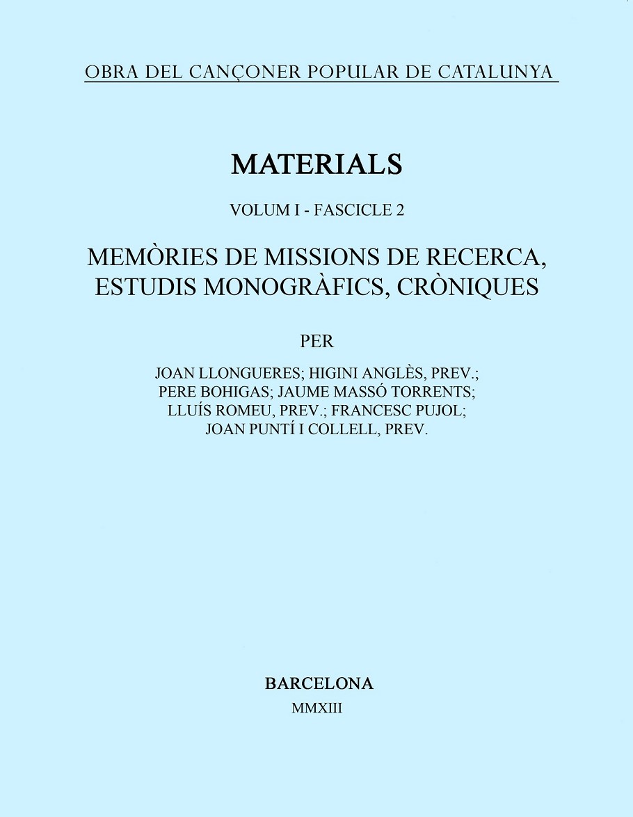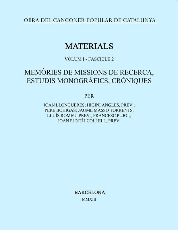 Edició facsímil dels dos fascicles que constitueixen el volum primer de Materials de l?Obra del Cançoner Popular de Catalunya. Un volum d?un enorme interès i exhaurit des de fa molts anys.