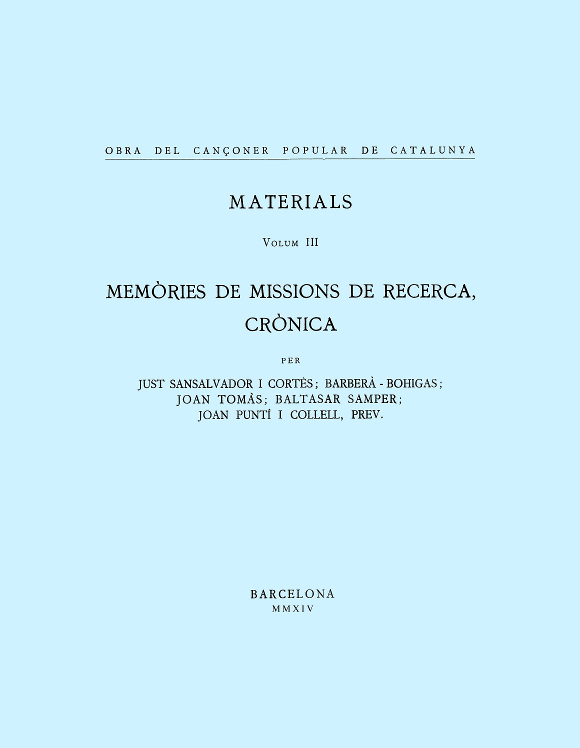 Edició facsímil del tercer volum de Materials de l?Obra del Cançoner Popular de Catalunya. Un volum d?un enorme interès i exhaurit des de fa molts anys. Amb aquesta reedició disposem dels 21 volums de la col·lecció