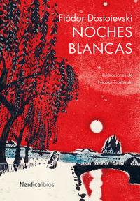 San Petersburgo, su luz, sus casas y sus avenidas son el escenario de esta apasionada novela. En una de esas «noches blancas» que se dan en la ciudad rusa durante la época del solsticio de verano, un joven solitario e introvertido narra cómo conoce de forma accidental a una muchacha a la orilla del canal. Tras el primer encuentro, la pareja de desconocidos se citará las tres noches siguientes, noches en las que ella, de nombre Nástenka, relatará su triste historia y en las que harán acto de presencia, de forma sutil y envolvente, las grandes pasiones que mueven al ser humano: el amor, la ilusión, la esperanza, el desamor, el desengaño.