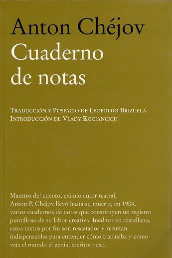 Maestro del cuento, eximio autor teatral, Anton P. Chéjov llevó hasta su muerte, en 1904, varios cuadernos de notas que constituyen un registro puntilloso de su labor creativa. Inéditos en castellano, estos textos por fin son rescatados y resultan indispensables para entender cómo trabajaba y cómo veía el mundo el genial escritor ruso.