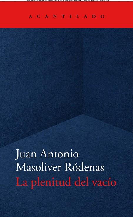 La plenitud del vacío es la culminación de la obra poética de madurez de Juan Antonio Masoliver Ródenas. A lo largo de estas páginas, el autor retoma temas habituales de su poesía—el erotismo y la fascinación por el cuerpo femenino, o la familiaridad con la muerte entendida a un tiempo como vacío y plenitud—, pero también se entrega a la voluntad de recordar a amigos desaparecidos, de saldar cuentas con el propio pasado y de asirse a la memoria, el último gran refugio del amor en ese postrero umbral que todos cruzaremos en soledad. A veces desgarradores y amargos, otras llenos de la lucidez y la serenidad que ofrece la perspectiva de los años, estos versos son muestra del extraordinario poder de la poesía para reelaborar el recuerdo y dotar de sentido la existencia.