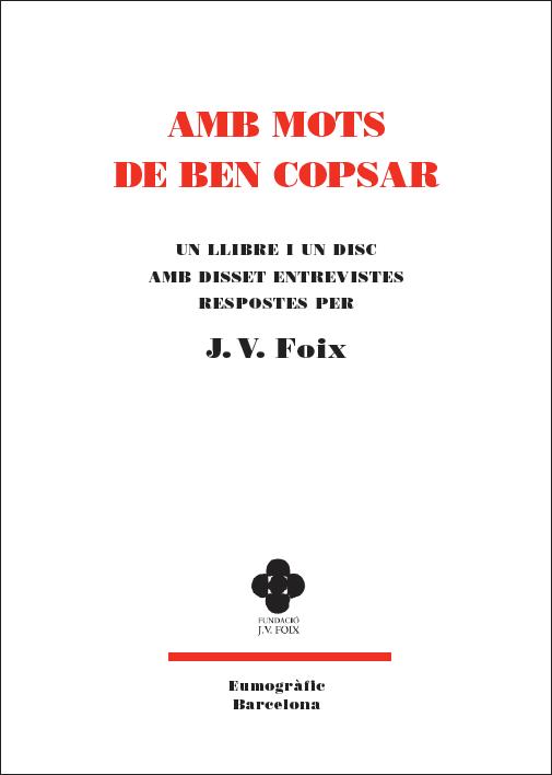 Amb mots de ben copsar recull la transcripció de disset entrevistes fetes a J. V. Foix i ordenades cronològicament, la majoria corresponents a la dècada dels vuitanta. El llibre va acompanyat d un disc multimèdia que conté les gravacions en format mp3 de setze d aquestes entrevistes. De la de 1973, que li va fer el seu amic Albert Manent per a la revista Serra d Or, no hi ha enregistrament. De les altres, deu són radiofòniques, dues televisives, una va ser publicada en format vídeo, una altra es va enregistrar a l Escola de Mestre d Osona. Estudis Universitaris de Vic, una altra correspon a la intervenció de J. V. Foix al cicle titulat Pèl & Ploma celebrat a l Ateneu Barcelonès i una altra va ser publicada al diari Regió 7.
