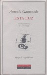Esta luz. Poesía reunida (1947-2004) incluye todos los libros de poemas de Antonio Gamoneda publicados hasta la fecha, con un apéndice que recoge parte de las versiones de algunos de sus poemas y lleva como epílogo un texto de Miguel Casado. Poeta solitario, la obra de Gamoneda está cargada de un fuerte simbolismo producto de un diálogo constante consigo mismo. La memoria, la historia y el autoanálisis se tensan en una escritura extrañamente densa y esencial a la vez, capaz de ofrecerse como espacio mítico de conocimiento y emoción.