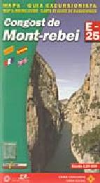 Mapa guía excursionista del Congost (estrecho) de Mont-rebei de escala 1:20.000. Se trata de una zona del prepirineo catalán en Lleida, un desfiladero creado por el río Noguera Ribagorçana. Incluye la zona del pantano de Canelles, e indicaciones de las rutas de largo (GR) y pequeño recorrido (PR). La guía excursionista contiene una pequeña introducción de la situación geográfica del valle y su espacio natural. También nos indica los puntos de interés de la zona, con excursiones a pie, travesías y ascensiones, indicaciones de espeleología. Y otros datos de interés como accesos, teléfonos, alojamientos.